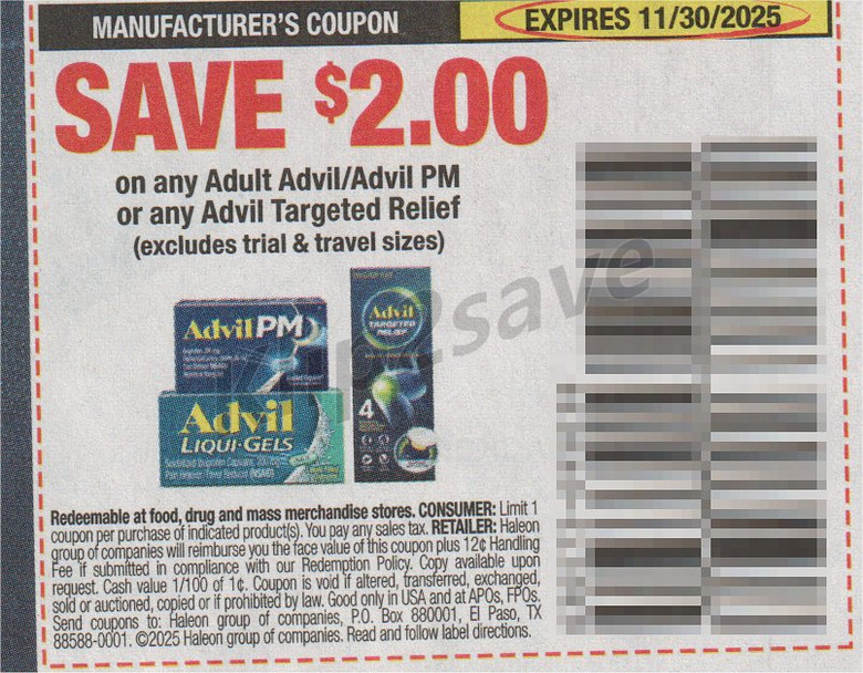 Click the button below to add the Advil Adult, Advil PM Purina Advil Targeted Relief exp Sun 11/30/25 SV 11-2 (save $2.00) to your wish list.