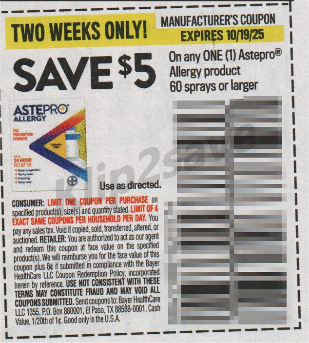 Click the button below to add the Astepro Allergy Product 60+ Sprays exp Sun 10/19/25 SV 10-5 (save $5.00) to your wish list.