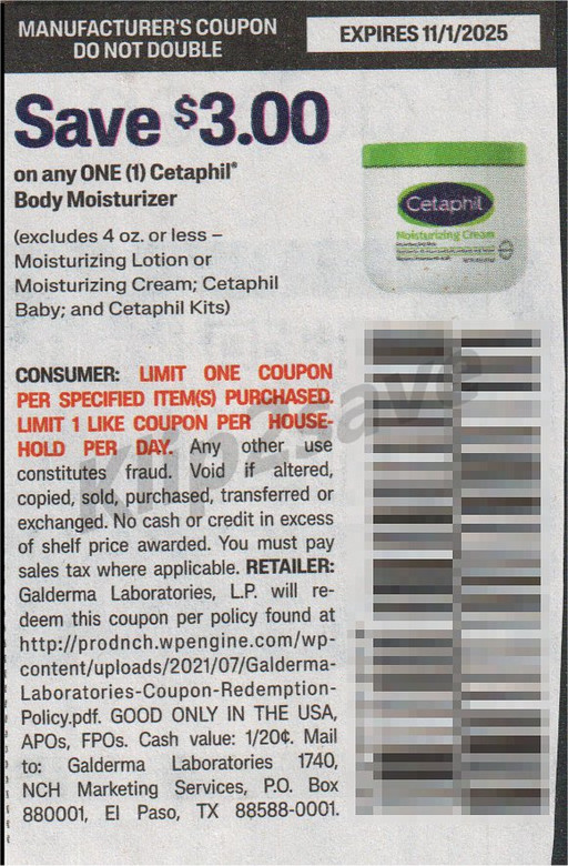 Click the button below to add the Cetaphil Body Moisturizer exp Sat 11/1/25 SV 10-5 (save $3.00) to your wish list.