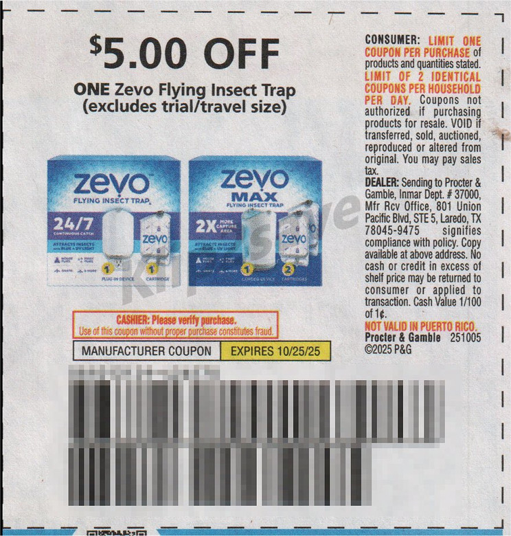 Click the button below to add the Zevo Flying Insect Trap exp Sat 10/25/25 SV 10-5 (save $5.00) to your wish list.